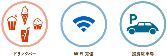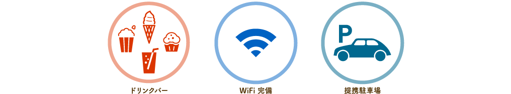 付近に駐輪場・駐車場あり(¥2,000以上のお会計で当店でのご利用時間分の駐車料金無料)